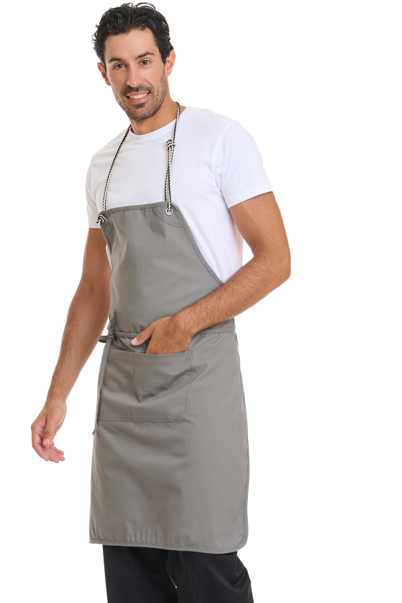 Μίνιμαλ σχεδιασμός με πρακτική διπλή μπροστινή τσέπη και δυνατότητα επιλογής λουριού λαιμού. Κατάλληλη για service, bar, pastry stations.