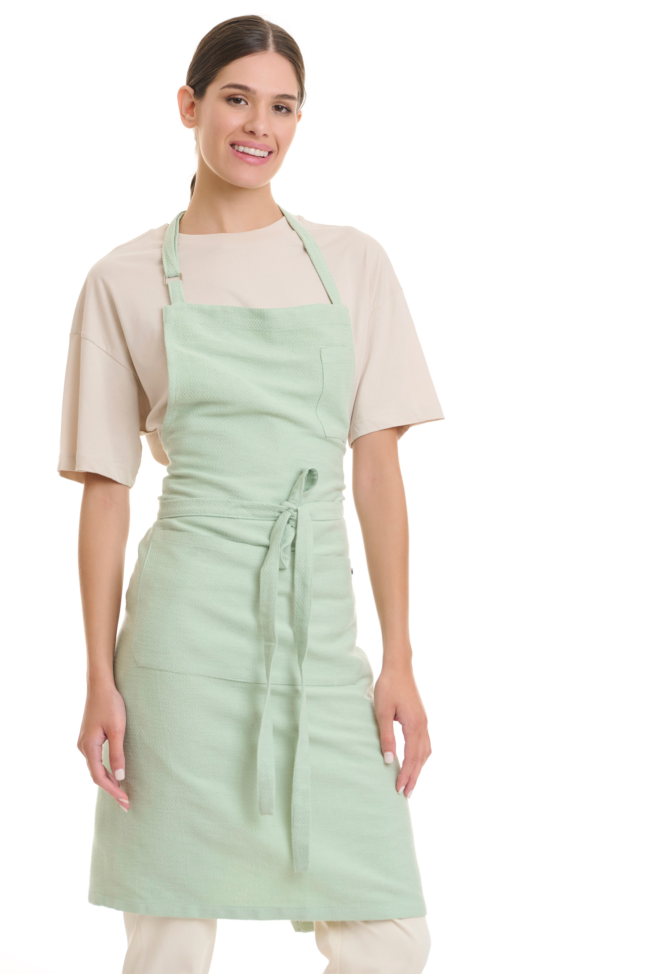 Durable full-length apron made of 100% cotton, offering high absorbency and a soft feel. Features a chest pocket and a large double waist pocket for tools or essentials.